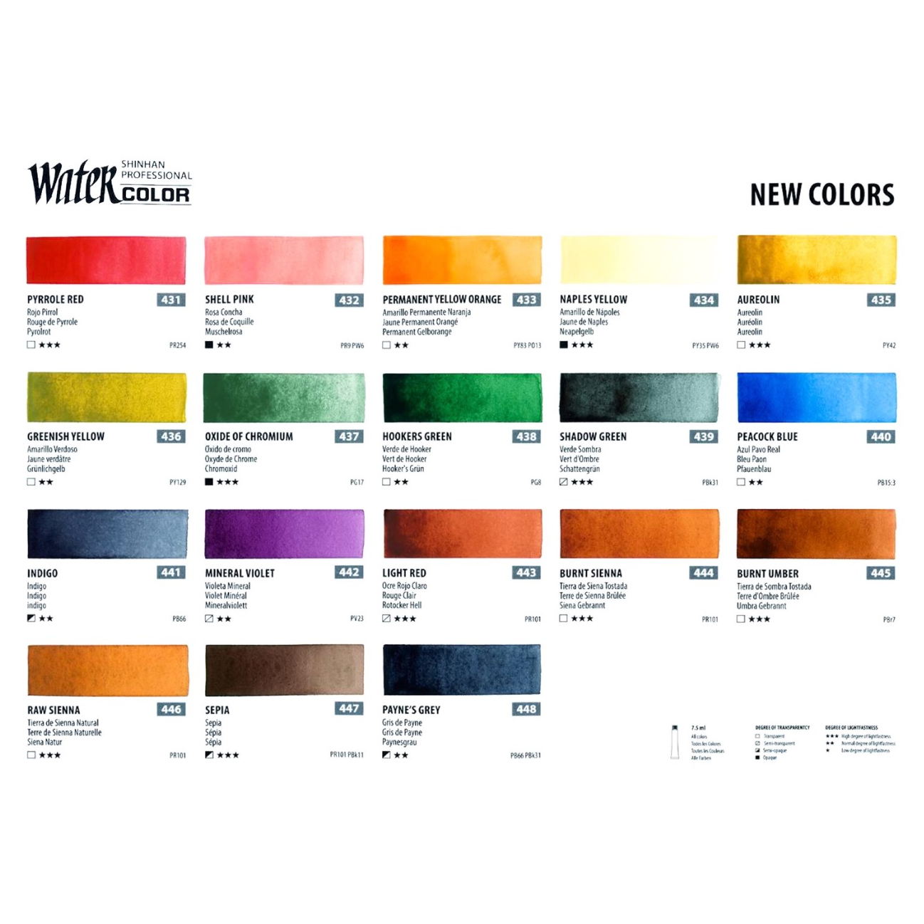 آبرنگ های Shinhan دارای مجموعه کاملی از رنگ های درخشان و با کیفیت است