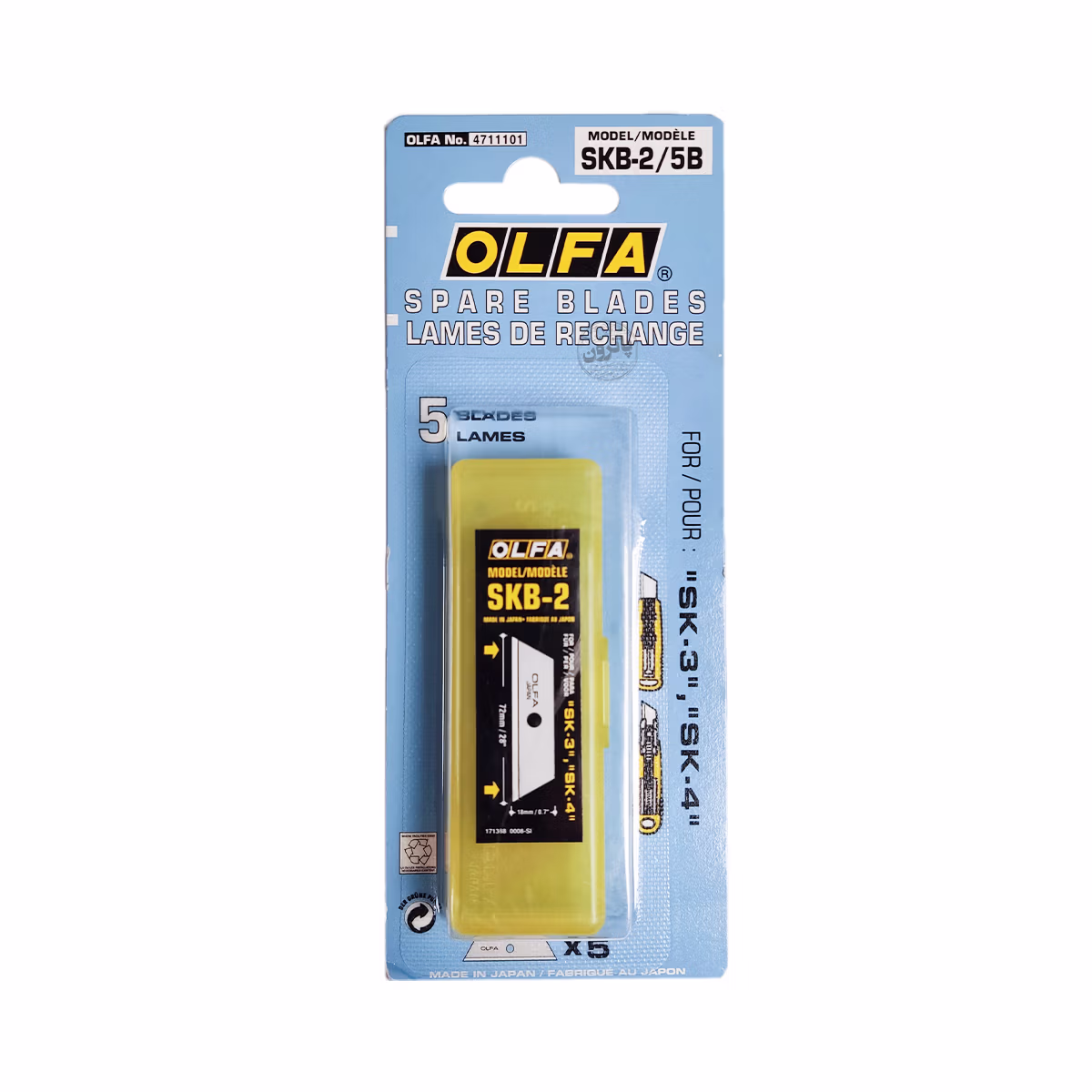 یدک تیغ الفا مدل SKB-2/5B بستهای شامل ۵ تیغ یدکی استاندارد برای کاترهای ایمنی و ابزار برش برند «الفا / OLFA» است. این تیغهای مثلثیشکل برای برشهای تمیز، دقیق و ایمن در کارهای بستهبندی، باز کردن کارتن، پلاستیک، فویل، فیلمهای بستهبندی و موارد مشابه کاربرد دارند.