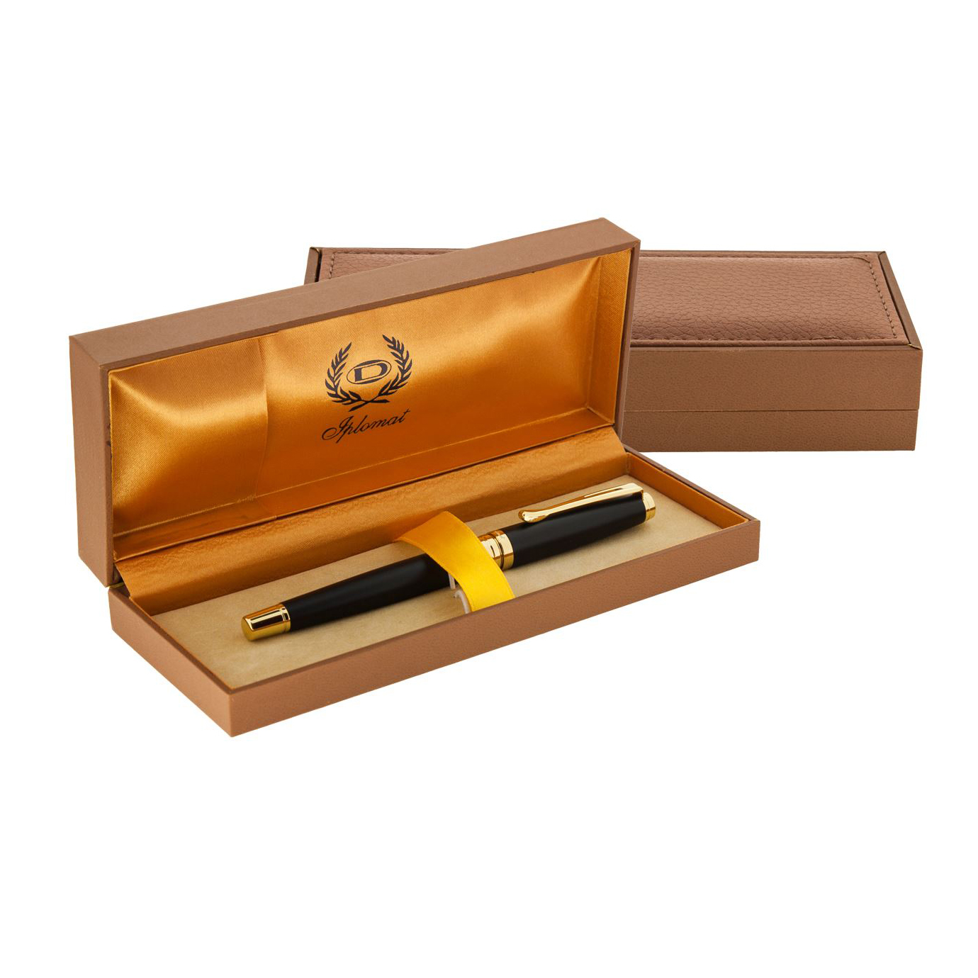 خودنویس آرنا در جعبه نفیس برند ایپلومات در رنگ قهوه ای چرمی قرار گرفته است