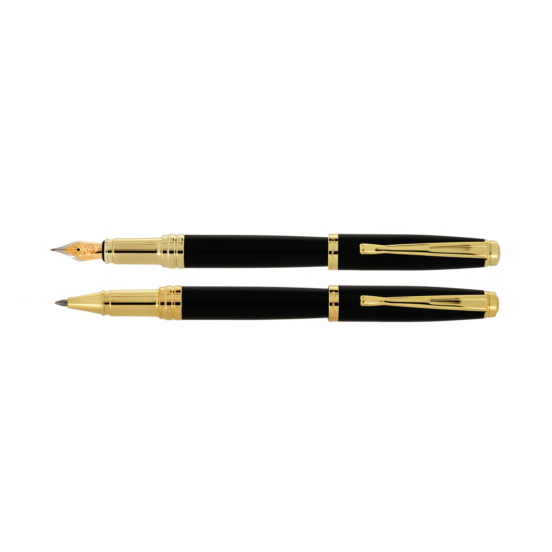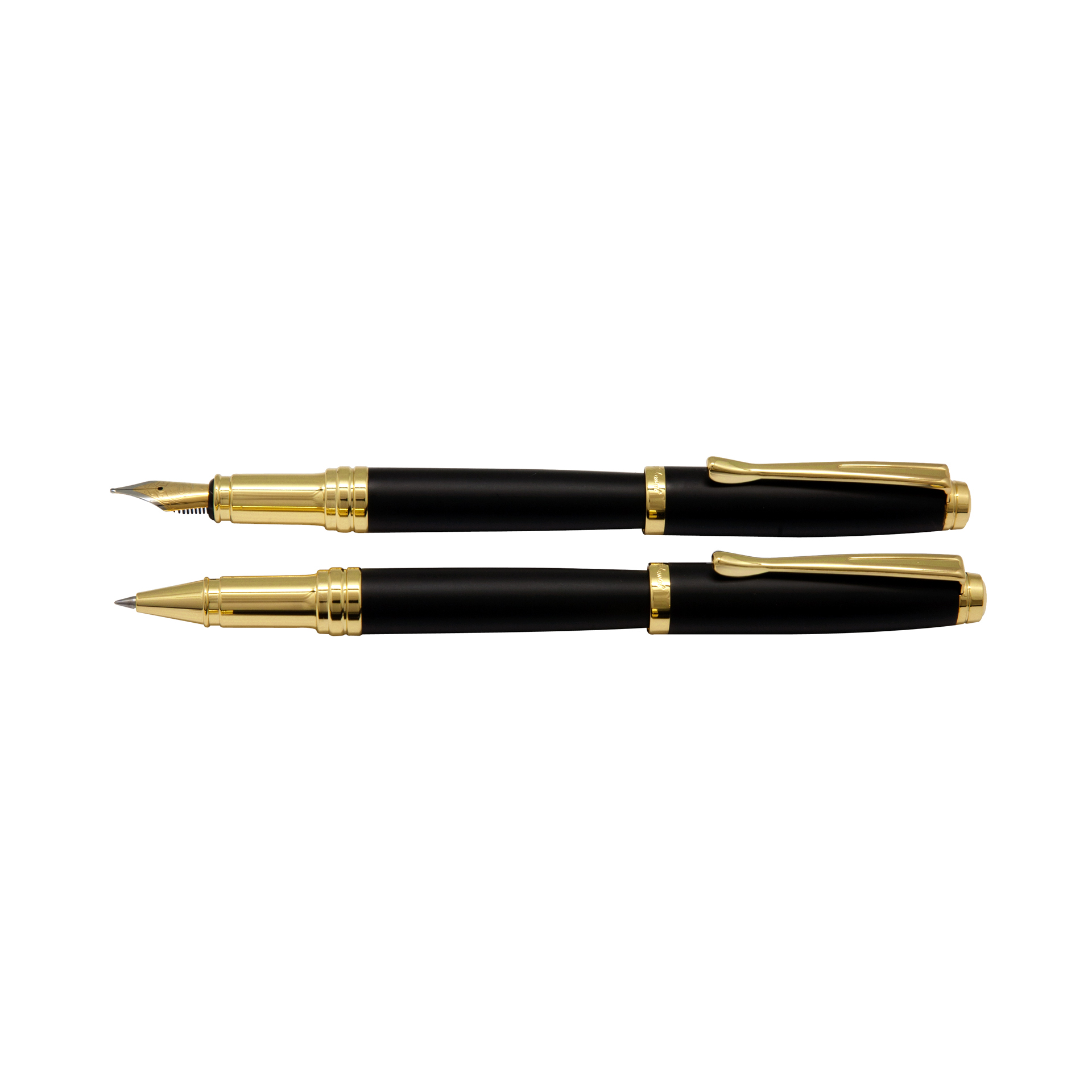 بدنه روان نویس و خودنویس مدل ARENA مشکی مات می باشد و قطعات طلایی با طلا آبکاری شده