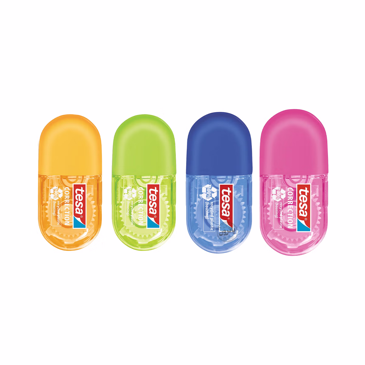 غلط گیر نواری tesa مدل Correction 59816 (یا همون tesa ecoLogo Correction Roller) یک غلطگیر نواری کوچک، خوشدست و فوقالعاده کاربردی از برند آلمانی tesa است که مخصوص اصلاح سریع و تمیز اشتباهات نوشتاری روی کاغذ طراحی شده. این مدل بهخاطر اندازهی جمعوجور و طراحی دوستدار محیط زیست (ecoLogo) خیلی محبوب شده و مثل یک قلم کوچک توی دست جا میگیره.